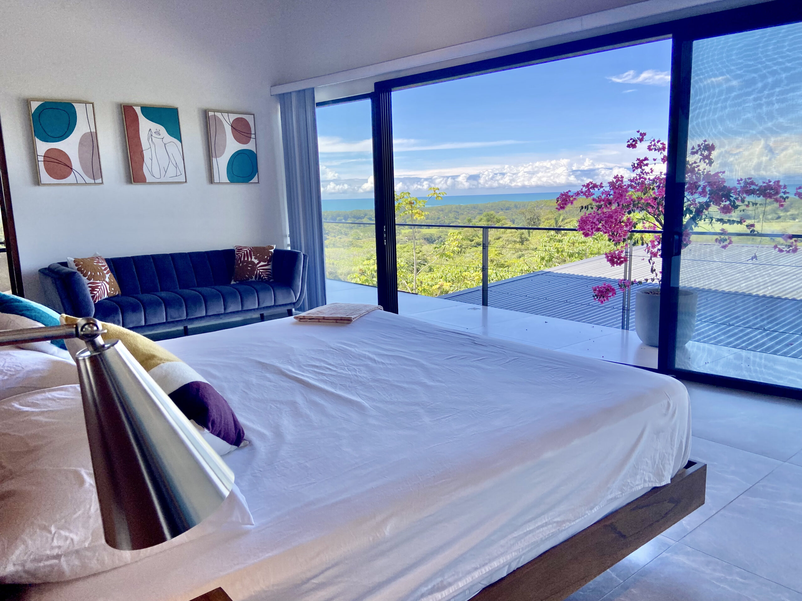 This newly built luxurious 3 Bedroom, 3 Bathroom, Two-Level Villa is all about convenience. Located in the most comfortable location in the region for the closest drive to town and beaches, and a short drive to the highway (less than three minutes to the Costanera highway). Dramatic and uniquely intimate ocean views (including the famous whales tail national park), with its close proximity to the beach and low elevation. A short drive to the beach at the beautiful Playa Hermosa Beach in the section near the site of the annual Envision music festival. This home is the best launchpad for tours and adventures if you want to have epic ocean views and a quick drive to activities.