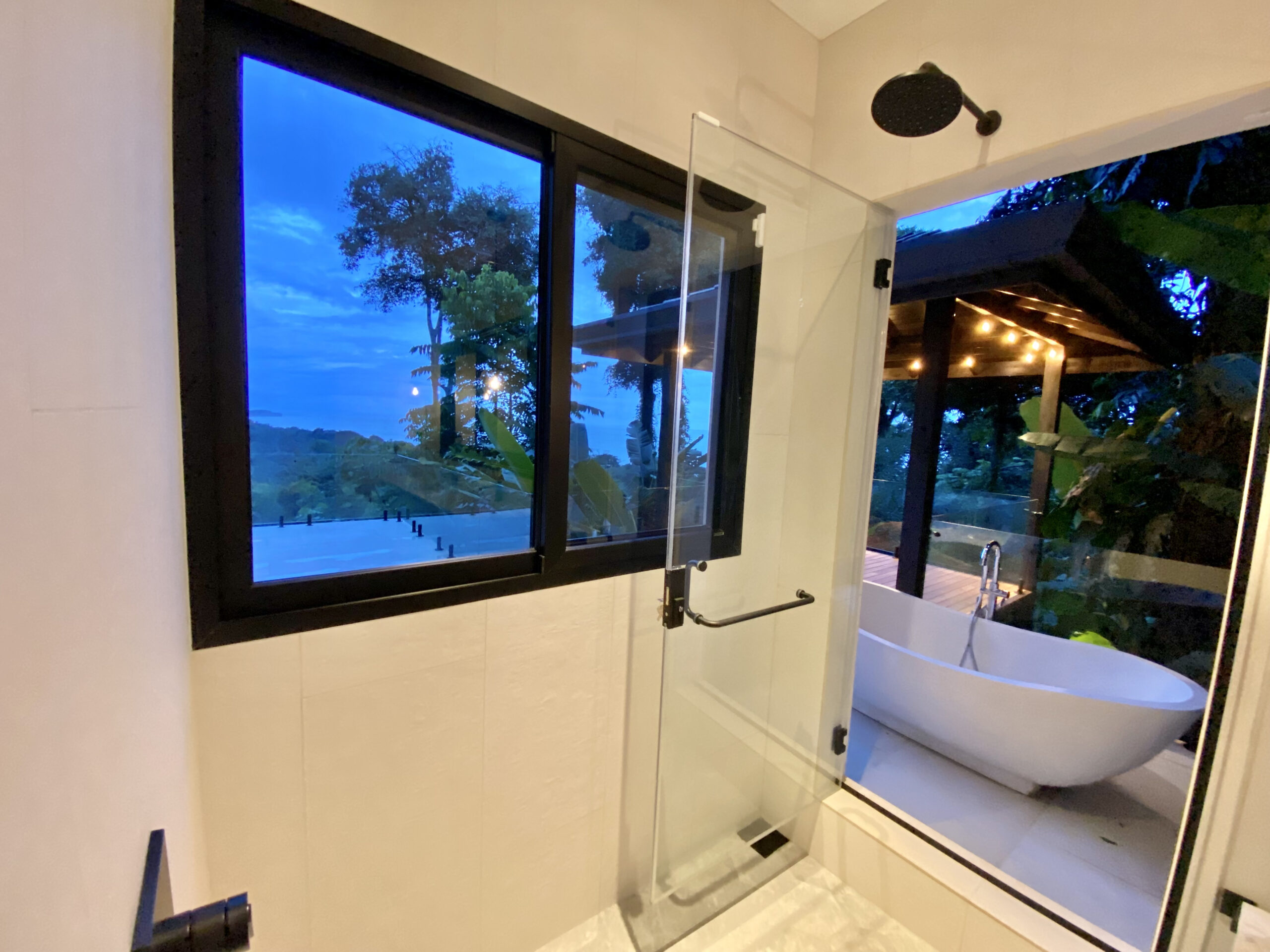 This gated property is located above Playa Hermosa (beautiful beach), overlooking the epic Whales Tale National Park. Here you can see the whales jumping out of the water from your bedroom during Whale season. Enjoy the lush jungle from your lounge chair and see the colorful scarlet macaws flying through your dramatic panorama. Close to one of the best surf breaks in the area (Playa Hermosa).